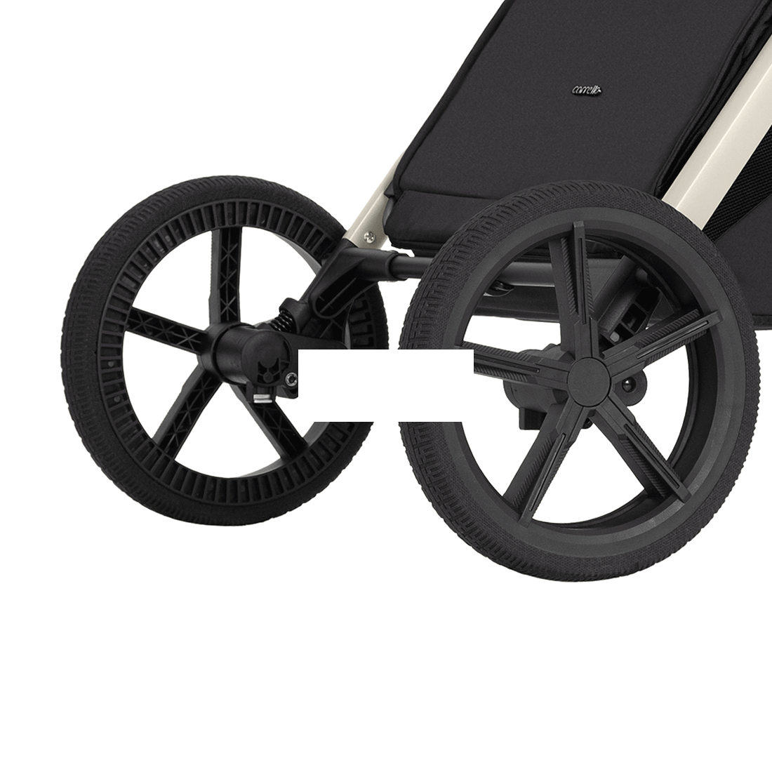- Одни переходники подходят на люльку и прогулочный блок. Материал колес - цельная резина с протектором.