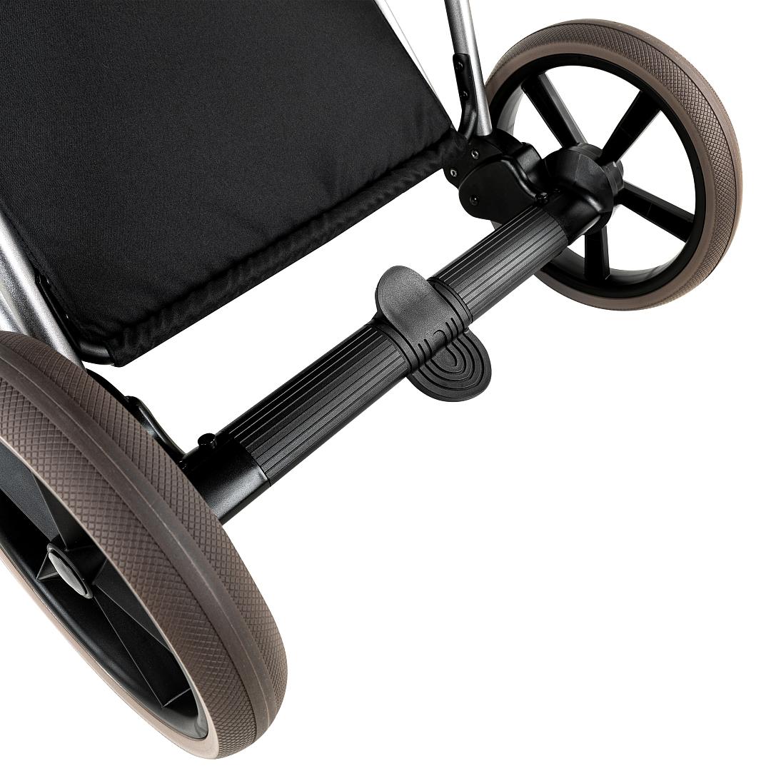 Гелевые колеса с двойными подшипниками обеспечивают плавный и бесшумный ход по любым дорогам. Регулируемые амортизаторы эффективно сглаживают неровности, гарантируя мягкое передвижение как в городе, так и на природе. Вместительная корзина из прочной ткани легко увеличивается в объеме благодаря откидному заднему бортику. Двусторонняя педаль тормоза на задней перекладине обеспечивает удобное и надежное торможение.