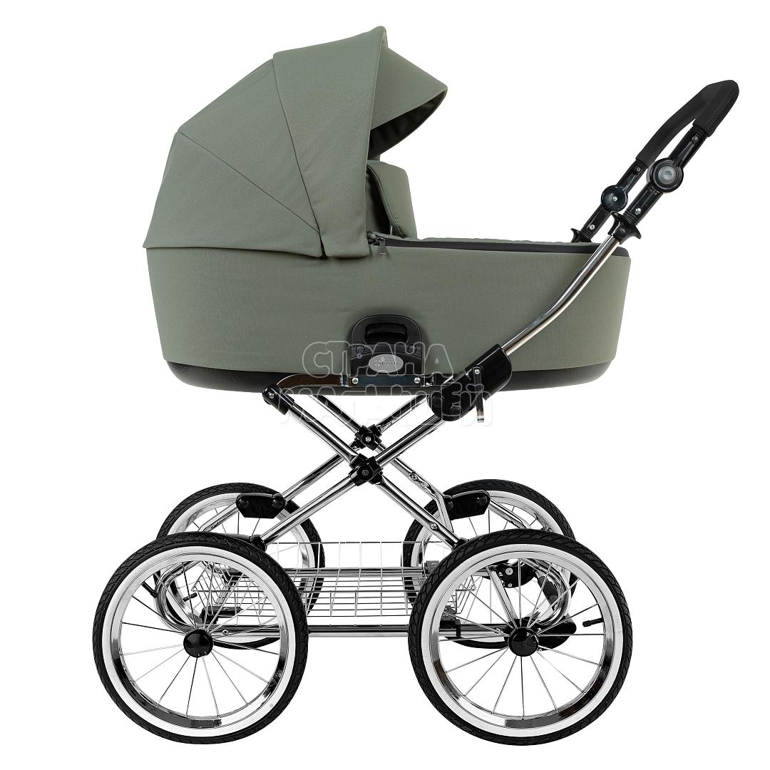 Коляска Roan Bass Next Classic - на хромированной классической раме. Новая европейская детская коляска предназначена для детей от 0 лет. Roan Bass Next Classic - изготовлена в строгом стиле с использованием качественной фурнитуры. Лаконичный модный дизайн, простота и удобство надежных механизмов - это то, чем вдохновлялись инженеры фирмы Roan. В следствие мы имеем стильную современную люльку в интересном исполнении и лучшую классическую мягкую раму. Колёса - стандартные 14 дюймовые надувные 36 см. Колёса не поворотные, но коляска управляется достаточно легко. Главное достоинство такой рамы, что при движении по труднопроходимой местности колеса не вибрируют, коляска движется очень легко, а идеальная амортизация, основанная на кулисах, закрепленных в четырех точках, обеспечивает хороший сон для ребенка.